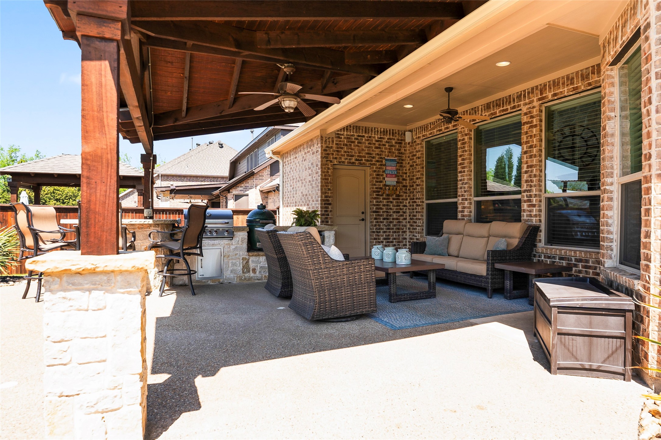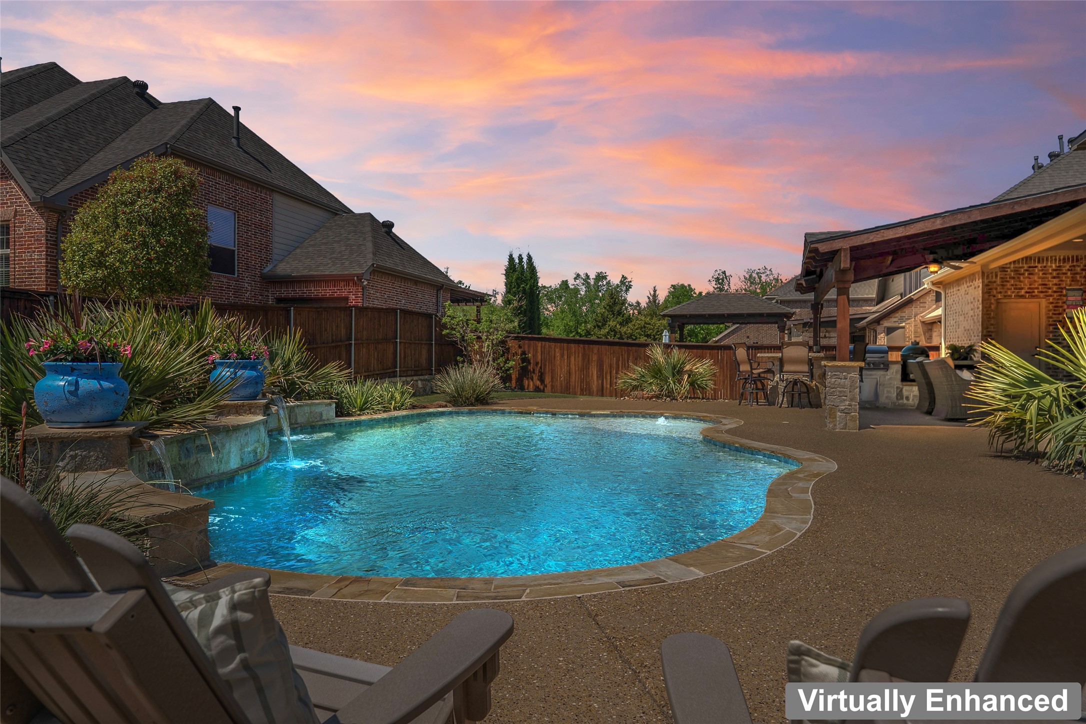 *GREAT CURB APPEAL ON FABULOUS CORNER LOT WITH SALT WATER POOL IN POPULAR HIGHLANDS AT TROPHY CLUB* This wonderfully maintained 3,562 sq ft 4 bedroom home offers rich wood floors and an inviting layout that includes a formal dining room and a private office with French doors, coffered ceiling, built-in bookcases, and its own closet--perfect for working from home or a quiet retreat. The living room impresses with a soaring two-story stone fireplace and a wall of windows that flood the space with natural light and frame views of the backyard oasis. Overlooking it all is spacious kitchen, featuring a large center island, granite countertops, stainless steel appliances, a gas cooktop, and a walk-in pantry, making it both functional and stylish. The secluded primary suite offers peaceful views of the pool and includes an ensuite bath with dual vanities, a soaking tub, separate shower, and a spacious walk-in closet. Upstairs, there's room for everyone with a game room, media room, three additional bedrooms, a Jack-and-Jill bath, another full bath, as well as a built-in study area. Step outside to enjoy the ultimate outdoor living experience with a large covered patio, complete with a built-in grill, refrigerator, and Green Egg, all overlooking a sparkling saltwater pool and a grassy area ideal for pets or play. The newly stained fence adds a fresh touch of privacy, and the home features numerous recent improvements including fresh interior paint, a new roof and gutters with a transferable lifetime warranty, a new main floor HVAC, updated sprinkler control system, newer garbage disposal, garage door opener, and a robotic pool cleaner. Thoughtfully designed and impeccably cared for, this home is the perfect blend of luxury and livability. Close to world class shopping & dining, just 15 minutes west of DFW International Airport with award winning NWISD.